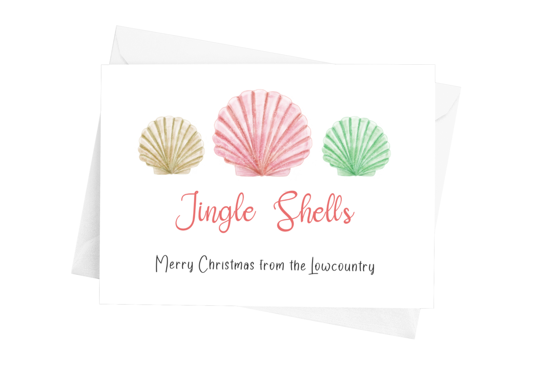 Spread seaside sparkle with these watercolor shells in festive hues. “Jingle Shells” is the ultimate card for anyone dreaming of a coastal Christmas.